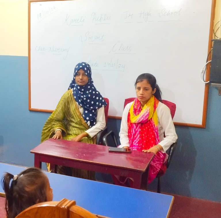 This is Alisha Alam, I am a teacher of kareli public school, I have been working in this school for 6 years. I have grown so much not just as teacher but as a person, I truly believe that students teach us as much as we teach them, our management is also cooperative and our principal is so supportive, she guide me how to teach students, I learnt a lot as a teacher in Kareli Public School.
