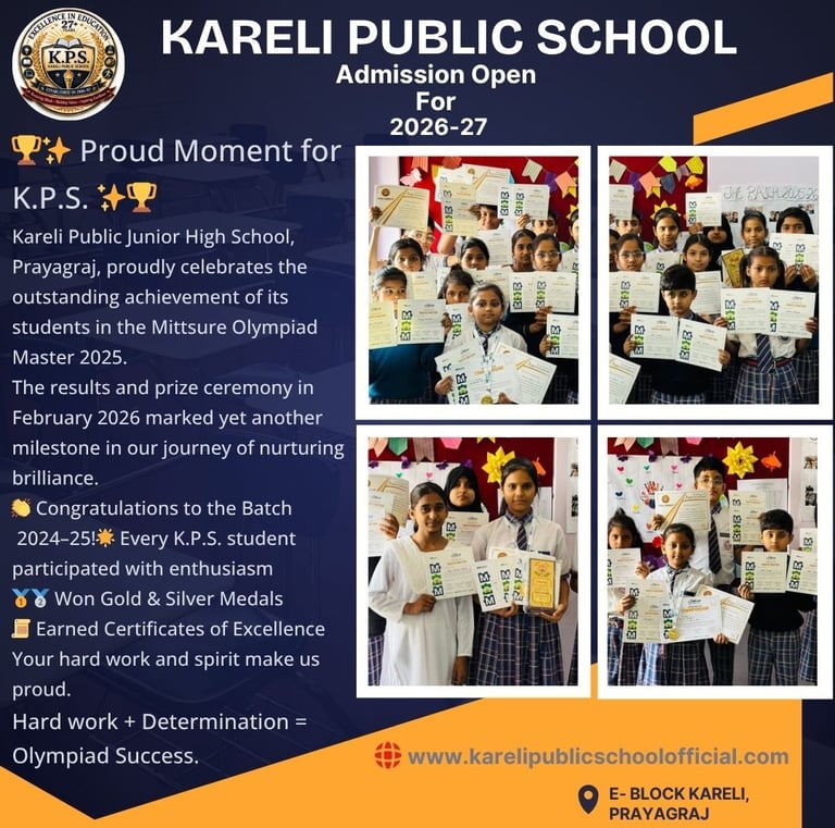 Kareli Public Junior High School, Prayagraj, proudly celebrates the outstanding achievement of its