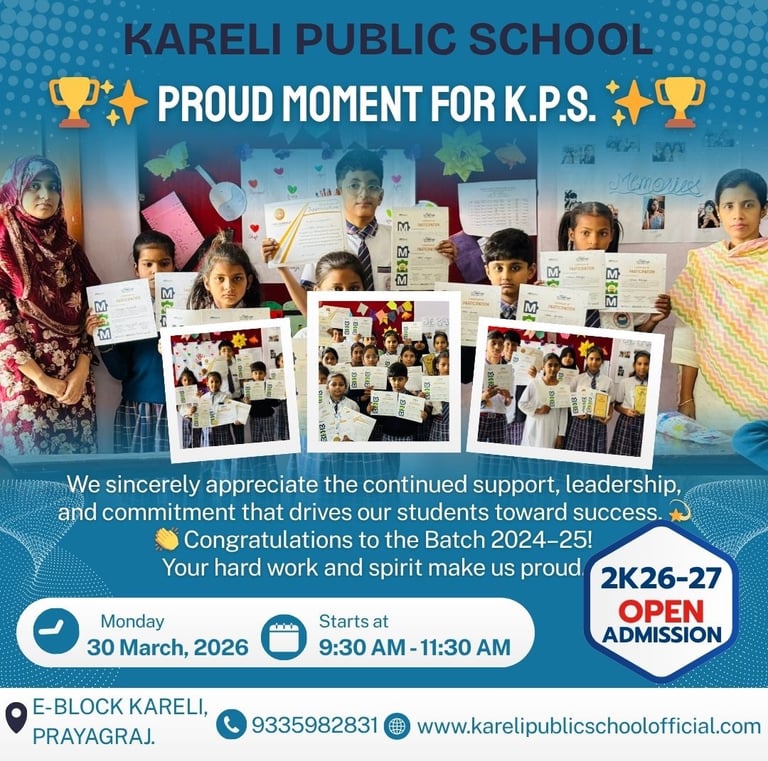 Kareli Public School in Prayagraj offers innovative education with smart classes, friendly staff, and affordable fees for students from 1st to 8th grade.
